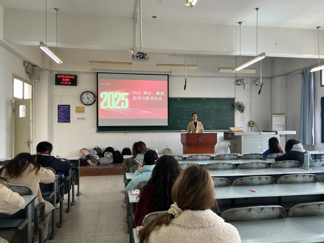党课中,杨佳子以聚焦经济与教育热点为题,紧扣政府工作报告核心内容,结合会计学科特色,重点解读了“提振消费”“民营经济”“人工智能+”等热点议题,强调员工党员应立足专业、胸怀大局,将个人成长与国家战略需求紧密融合。