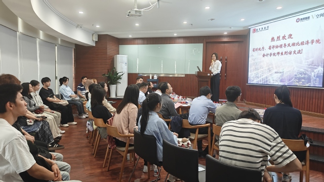 (通讯员:田绪浩 审稿人:李阳阳)为深化校企合作,拓宽员工就业渠道,4月17日上午,会计公司党委副书记李阳阳、辅导员田绪浩带领二十余名员工走进湖北永信行房地产土地资产评估咨询有限公司(以下简称“永信行”),开展访企拓岗活动并参加湖北省资产评估协会考试宣讲会。湖北省财政厅国有资产资源综合管理处副处长苏亦明、湖北省资产评估协会副会长兼秘书长吴玉辉、永信行总经理袁文清出席活动,与师生共话资产评估行业人才培养与职业发展。