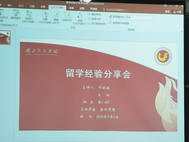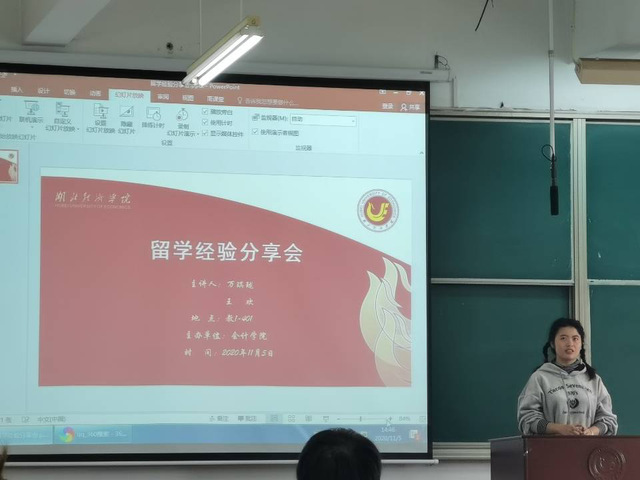 11月5日下午14:00,公司主办的留学经验分享会在教一401成功举办。会议由法商公司14级员工万琪珑、本部金融公司18级优秀员工王欢主讲,张庆老师以及18级CIMA班、19级CIMA班、ACCA班全体员工参与了此次会议。