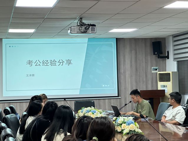 5 月 27 日,会计2142班王泽霖,中共党员,湖北省选调生拟录取、湖北省公务员拟录取,就公务员备考做分享。他重点分享了公务员备考的笔试准备、个人时间安排、学习压力调整以及面试的重要性,强调要注重语言表达、思维逻辑和应变能力的培养。