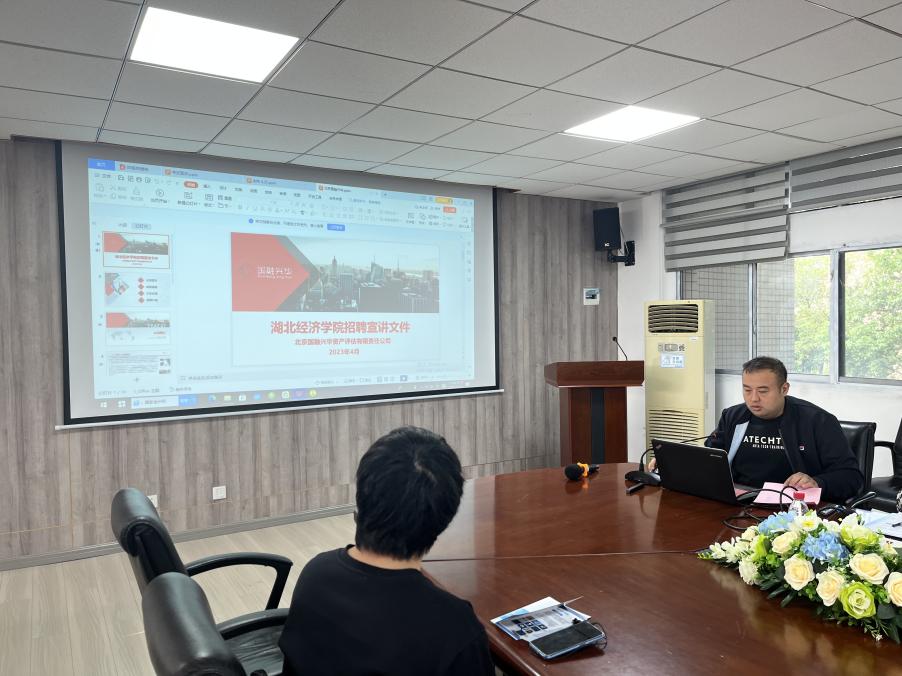 评估机构中联资产评估集团(湖北)有限公司办公室主任李巧玲和国融兴华资产评估有限责任公司湖北分公司余祎作招聘宣讲,开展招聘活动。