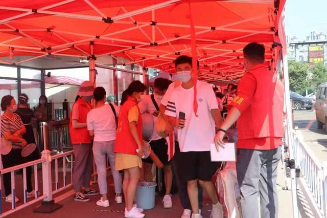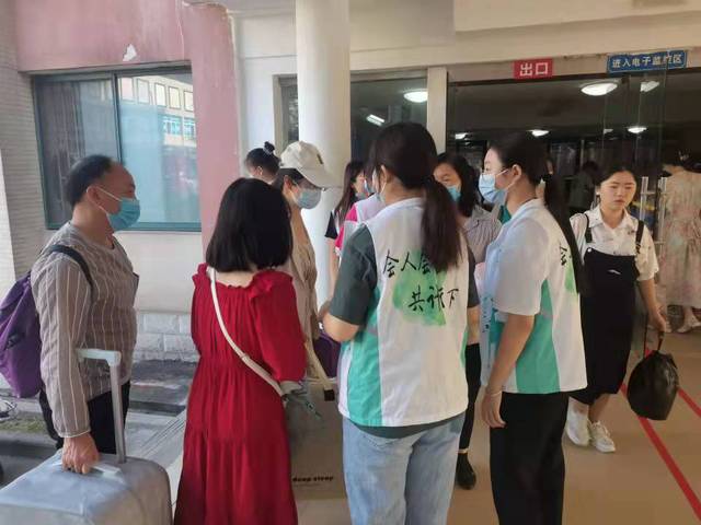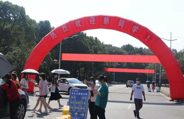 新生及新生家长进入校园时,各志愿者按照疫情防控工作方案规定对其严格进行扫码、测温,送学车辆也在交通秩序管理工作人员的引导下按既定路线有序停在新生泊车处。