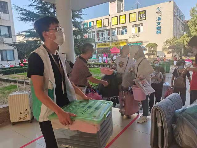 会院的志愿者们细心统计新生到校人数、组织新生到校签名,热情主动帮助新生搬运行李,随时为新生及新生家长进行疑问解答。
