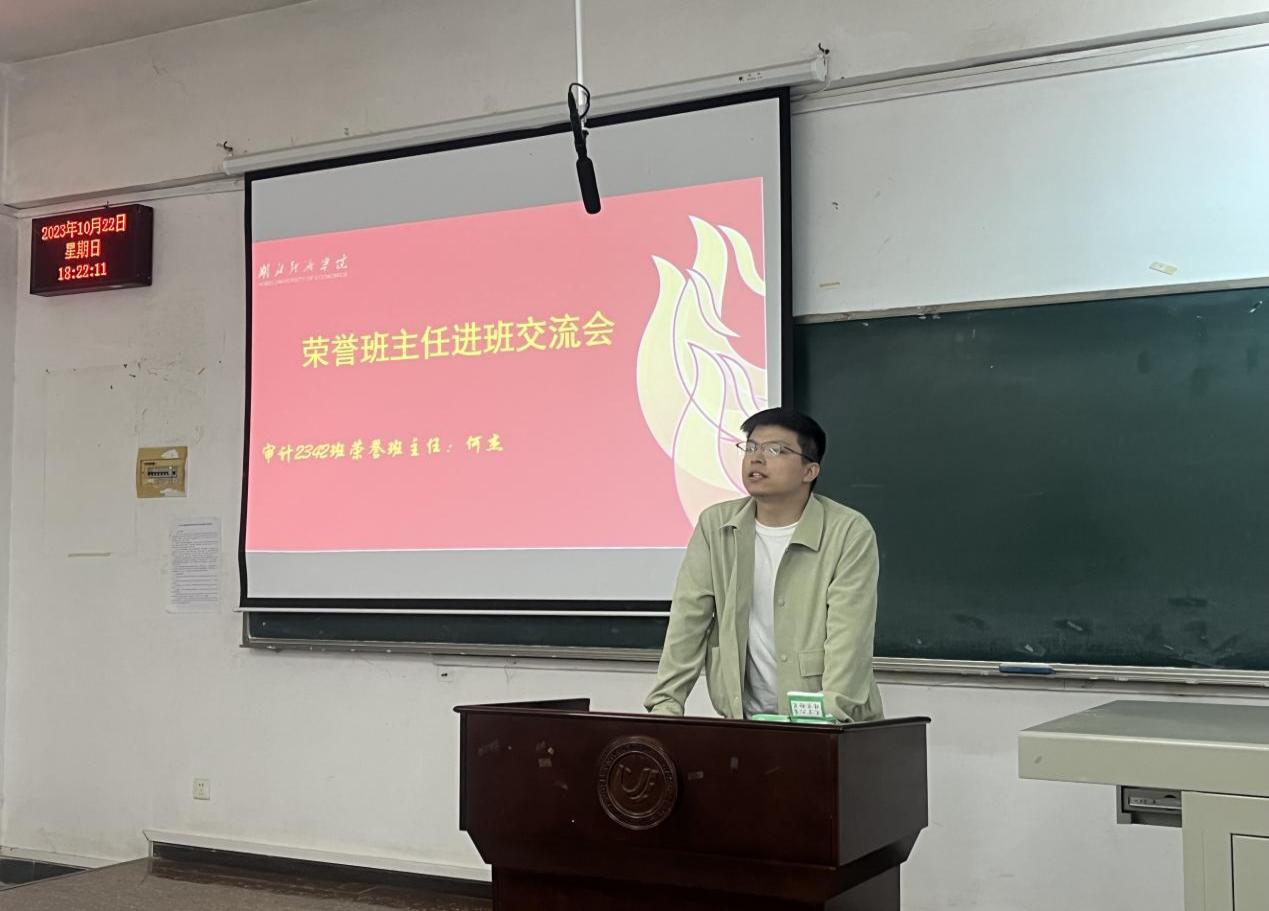 为了帮助2023级新生更好更快适应老员工活,做好大学规划,10月22日晚,公司开展2023级荣誉班主任进班交流活动。CIMA2341班、财务智能2341班、审计2341班、审计2342班荣誉班主任进入各班与同学们进行交流。