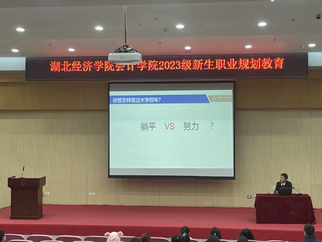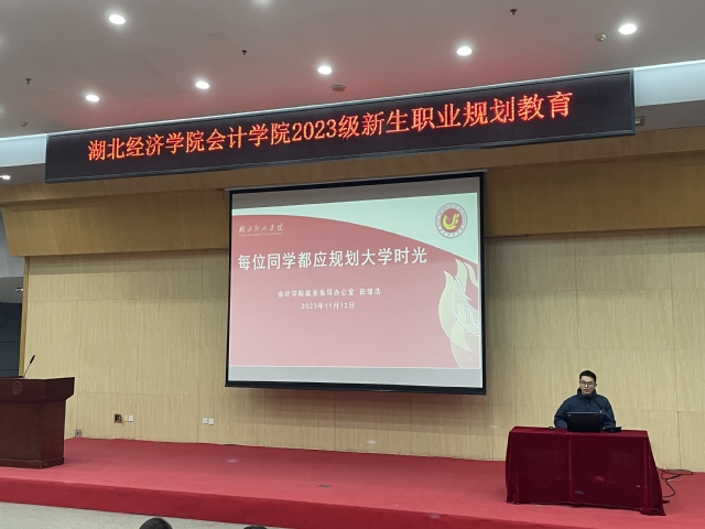 11月12日晚上六点半,bevictor1946韦德官网在老员工活动中心二号报告厅举办了2023级新生职业规划教育讲座。讲座邀请了2023届毕业生孙媛、周静奇分享了大学规划经验,就业指导老师田绪浩作职业规划讲座,大一辅导员老师李思颖参加。会议由就业指导老师石津楠主持。