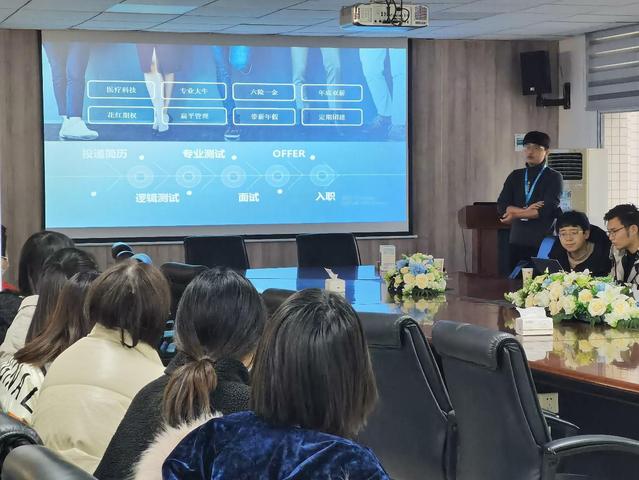 康博嘉线下招聘会上,企业相关负责人首先对企业概况、福利待遇以及工作内容等进行了详细的介绍。其次邀请有意向的毕业生在近三日内进行笔试、线上面试以及入职实习。高途与致同会计师事务所在招聘会现场开展了面试,通过面试的同学可提前进入企业实习。对于部分未能抵达现场员工,就业老师将线上推荐给企业,争取为员工谋取就业机会。