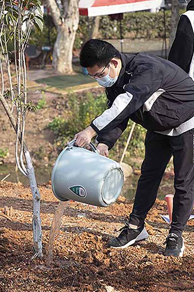 活动开始后,bevictor1946韦德官网志愿者纷纷上前领取工具,跟随带队老师到指定地点开始植树。志愿者们分工明确,一半排队打水,另一半两两一组进行培土。炎热的天气下,同学们互相激励,干劲十足。截至十点,志愿者们完成了植树任务,与公司领导们在树间合影留念。