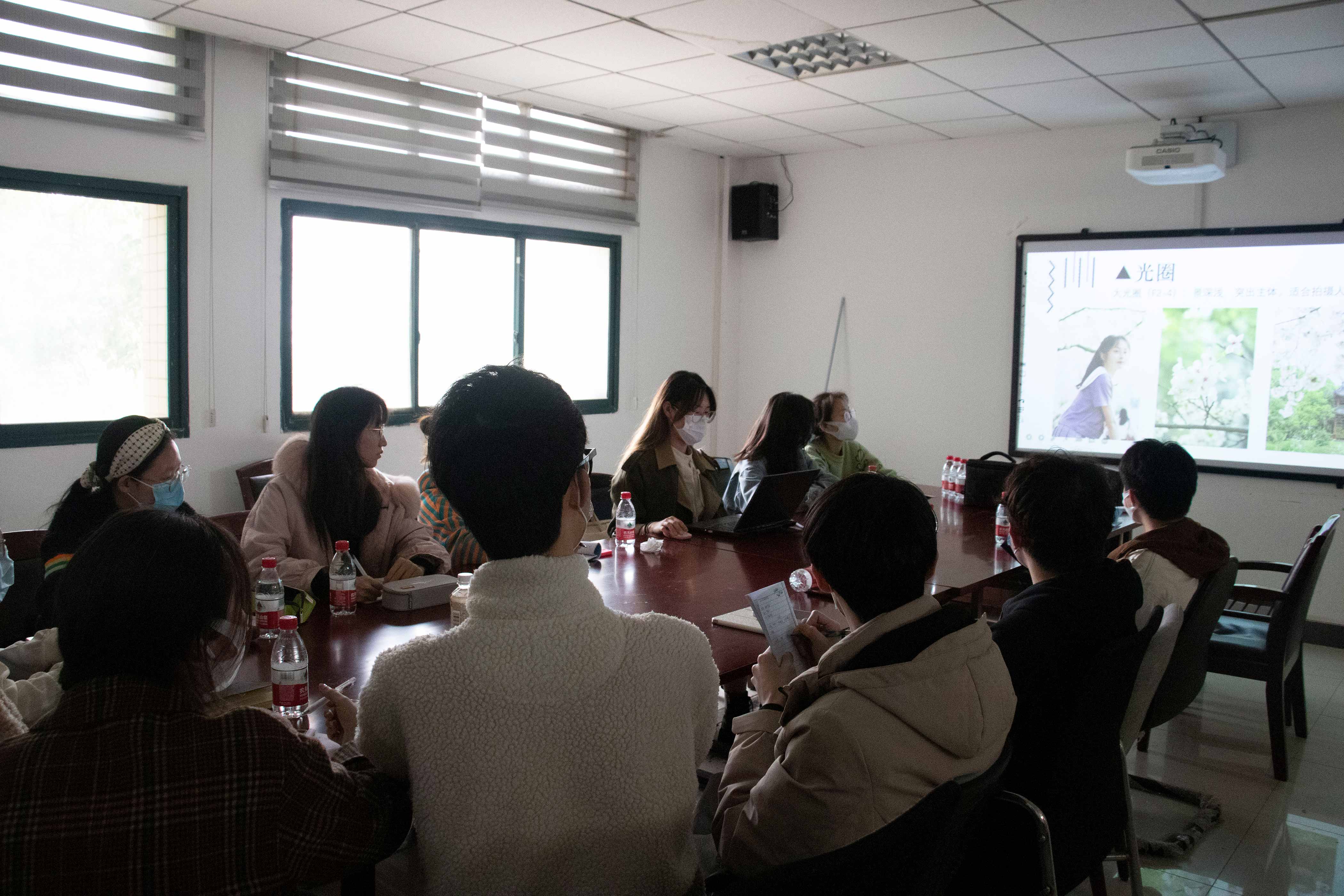 会议中,彭文婕同学,以图文结合的方式,通过展示一些优秀的摄影作品其中蕴含的摄影技巧,来为我们讲解知识,并以团委宣传部往日拍摄的作品为案例,一一讲解,通俗易懂。会议的最后,彭文婕同学指导与会员工干部进行现场实操,拍摄会议场景,并且为我们详细讲解,给大家留下了深刻的印象。