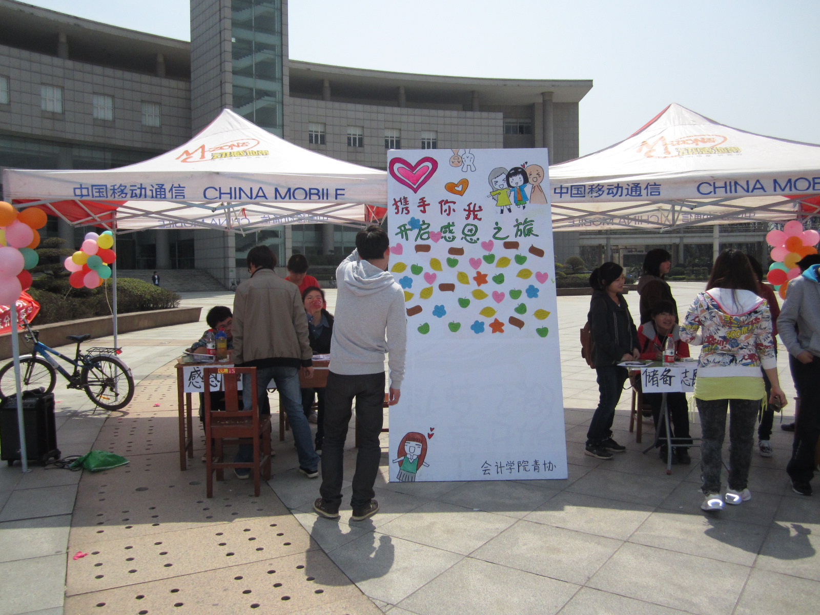 此次活动主要分为四个部分:“感恩他人的‘一封信’”、“感恩经院的‘一句话’”、“感恩诚信签名”以及“志愿服务活动”。活动现场人头攒动,许多同学驻足观看宣传海报并在感恩祝福的展板上留下了自己对经院的祝福,其中不乏幽默诙谐的话语,从这些行动中可以清楚感受到大家对经院的感恩之情。