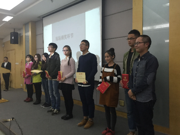最后,主持人请出席本次活动的老师分别为各自公司的同学们颁奖,在座的同学们也为获奖同学鼓掌表示赞扬。此次大会以崔伦华老师的总结结束,崔老师说:“纸上得来终觉浅,绝知此事要躬行。”他鼓励同学们学习社会实践经验,加强自行思考的能力,并有效利用资源,努力将事情做到更好,学习到更多的东西。