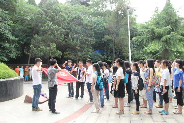 首先,大家在李阳阳老师和熊婉彤老师的带领下来到了施洋烈士陵园。怀着无比崇敬的心情,大家站在施洋烈士的墓前高唱国歌,刘襄生同学作为代表向这位先烈献花致敬并带领大家重温入党誓词。“我志愿加入中国共产党,拥护党的纲领,……永不叛党”,一句句铮铮誓言响彻天空。