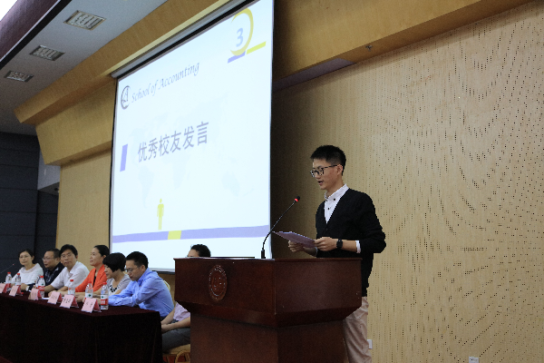 优秀员工中南财经政法大学2014级审计硕士马文涛同学用幽默诙谐的语言,回顾了他在经院生活的点点滴滴,并告诫学弟学妹们切莫挥霍光阴,在大学里依然还要刻苦学习才能收获硕果。2015级新生代表贺锴欣同学表示,自己对老员工活拥有强烈好奇心,希望在新环境里有新进步,愿每位同学都能在新的起点上继续追逐自己新的梦想,最后他以英国诗人西格里夫·萨松的著名诗句“心中有猛虎,细嗅小蔷薇”结尾,寓意深刻。2015级年级辅导员林哲宇老师表示自己一定会用爱心、智慧和责任引领员工成长,热心带好每一位新生。