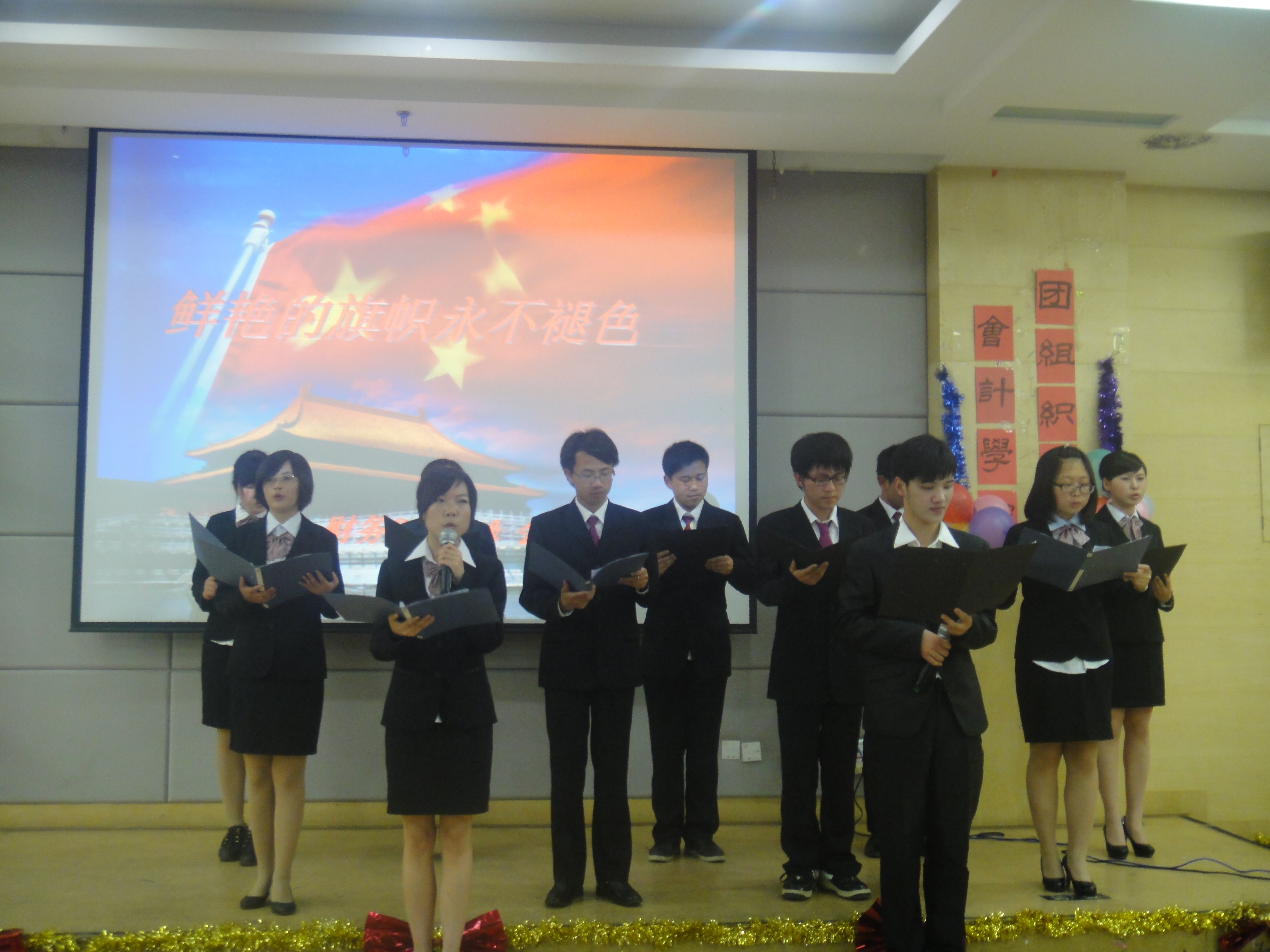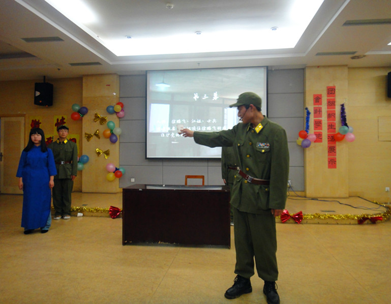 此次活动的主题是“激情逐日——纪念中国共青团成立90周年”,因此各班各展所能,纷纷献礼共青团生日。资产Q1141班的诗歌朗诵《矢志不渝,国威如山》以及随后的会计Q1143班和财务Q1142班的《鲜艳的旗帜永不褪色》气贯河山,不仅展现出了同学们的激昂气魄,更展现了同学们对共青团、对祖国的热爱。注会Q1141班和财务Q1141班的红歌串烧,带领在座的同学们回首了新中国成立后经历的风风雨雨。审计Q1141班带来的话剧《江姐》让同学们穿越时空,亲历国共内战时期的腥风血雨,其精彩的表演完美诠释了江姐的大义凛然与舍生取义的优秀品质,感染了在场的每一位同学,也让我们深刻体会到了如今共产主义果实的来之不易。注会Q1142班的小品《红领巾》让每位同学在笑声中体会到了作为祖国新一代的我们所要发扬的品质和需要摒弃的丑恶。