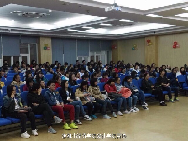 此外,她又介绍了四大会计师事务所及各大知名企业,她用她专业的知识,幽默的语言向同学们打开了另一扇门,让同学们全面了解了财经知识,赢得了同学们的阵阵掌声。她将自身经验毫无保留地传授给同学们,让同学们如沐春风。