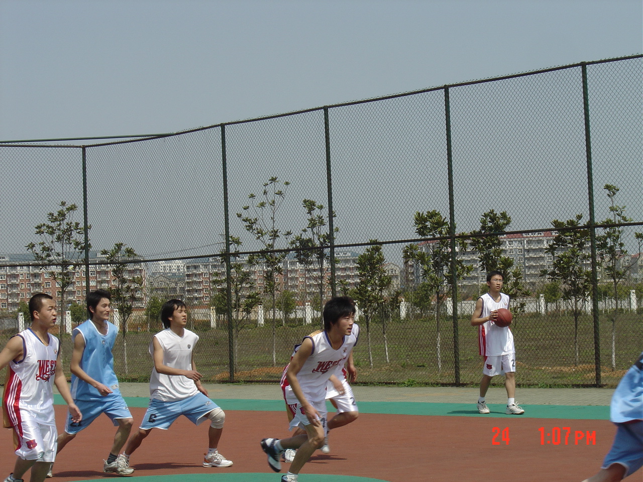 同学们的热情使艳阳更加火热。大一、大二、大三各班篮球队员各个摩拳擦掌,准备大干一番。拉拉队更是声势浩大,表现出各班的团结一致。经过40分钟,第一天的比赛在欢呼声中结束了。但同学们热情不减,期待未来几天更加精彩的比赛。
