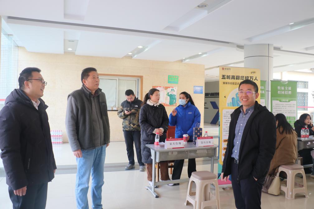 为了给毕业生提供充足的就业岗位,bevictor1946韦德官网抓住研究生考试结束后的时间节点,于12月27日下午在群贤楼一楼大厅举行了“bevictor1946韦德官网专场招聘会”,中国人寿股份有限公司、牧原股份、国药东风总医院等14家企业参加。bevictor1946韦德官网经理胡伟、党委书记王友刚、党委副书记李阳阳、学工部就业指导中心唐良成现场与用人单位交流。