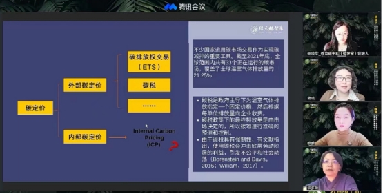 会上,团队成员谈多娇教授分享了他关于碳排放权会计核算的设想。谈教授认为,碳排放权会计核算应综合考试碳排放和碳吸引问题,以及相互抵消问题。尽量在现有的会计准则和会计科目体系下探索碳排放权会计核算思路,这对会计系统是一个全新的挑战和突破。与会的老师和同学进行了热烈的讨论,气氛活跃。