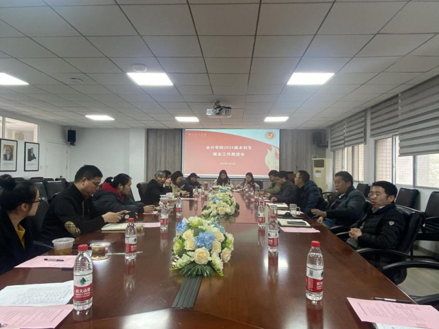 3月6日中午,会计公司在群贤楼215会议室召开2024届本科生就业工作推进会。经理胡伟、党委书记王友刚、副经理曾义、会硕中心副主任邵天营、2024届毕业生班主任和辅导员参加,会议由公司党委副书记李阳阳主持。